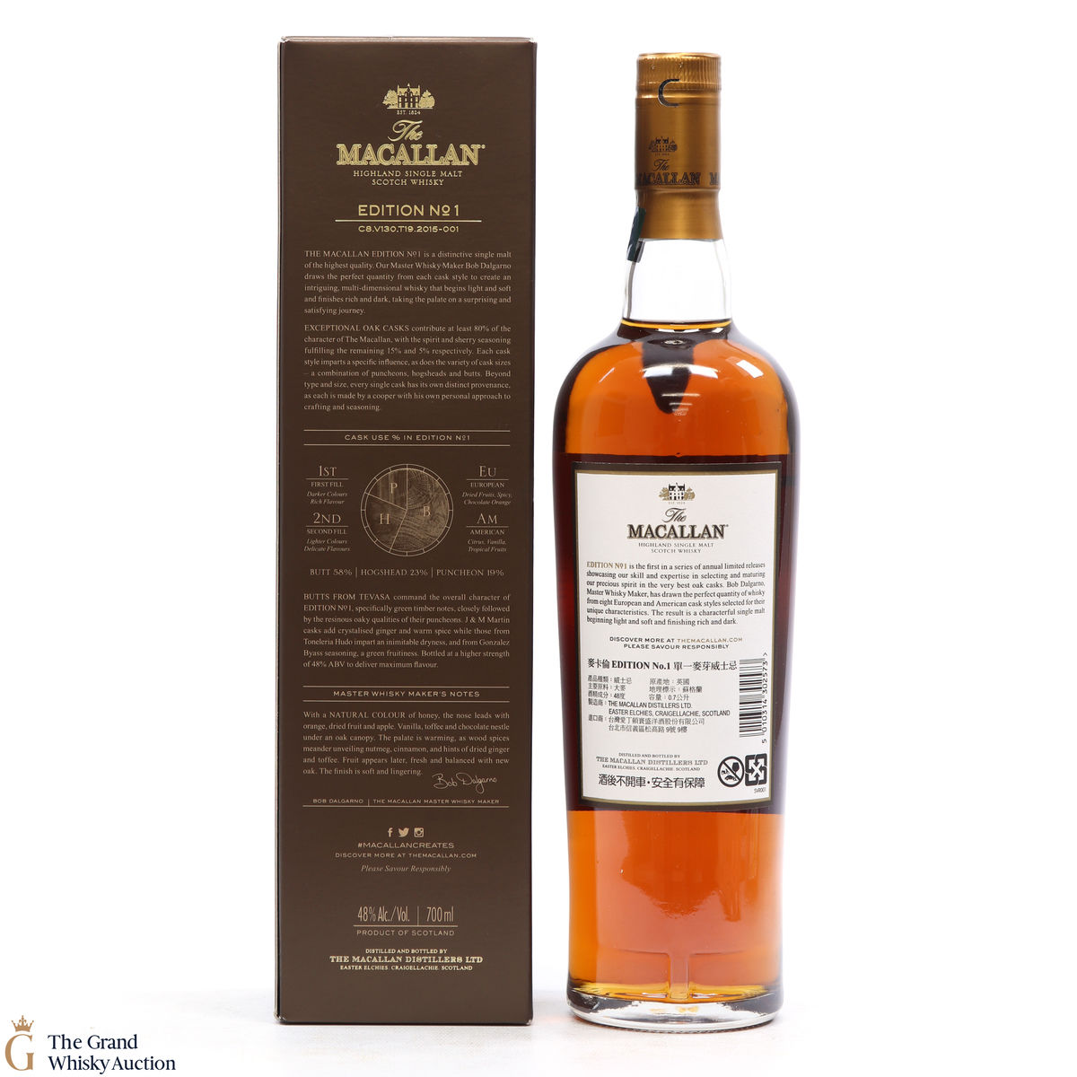 The Macallan Edition No. 1 is the debut expression in the Edition Series. This is a limited edition drawn from eight European and American oak cask styles selected for their unique characteristics.