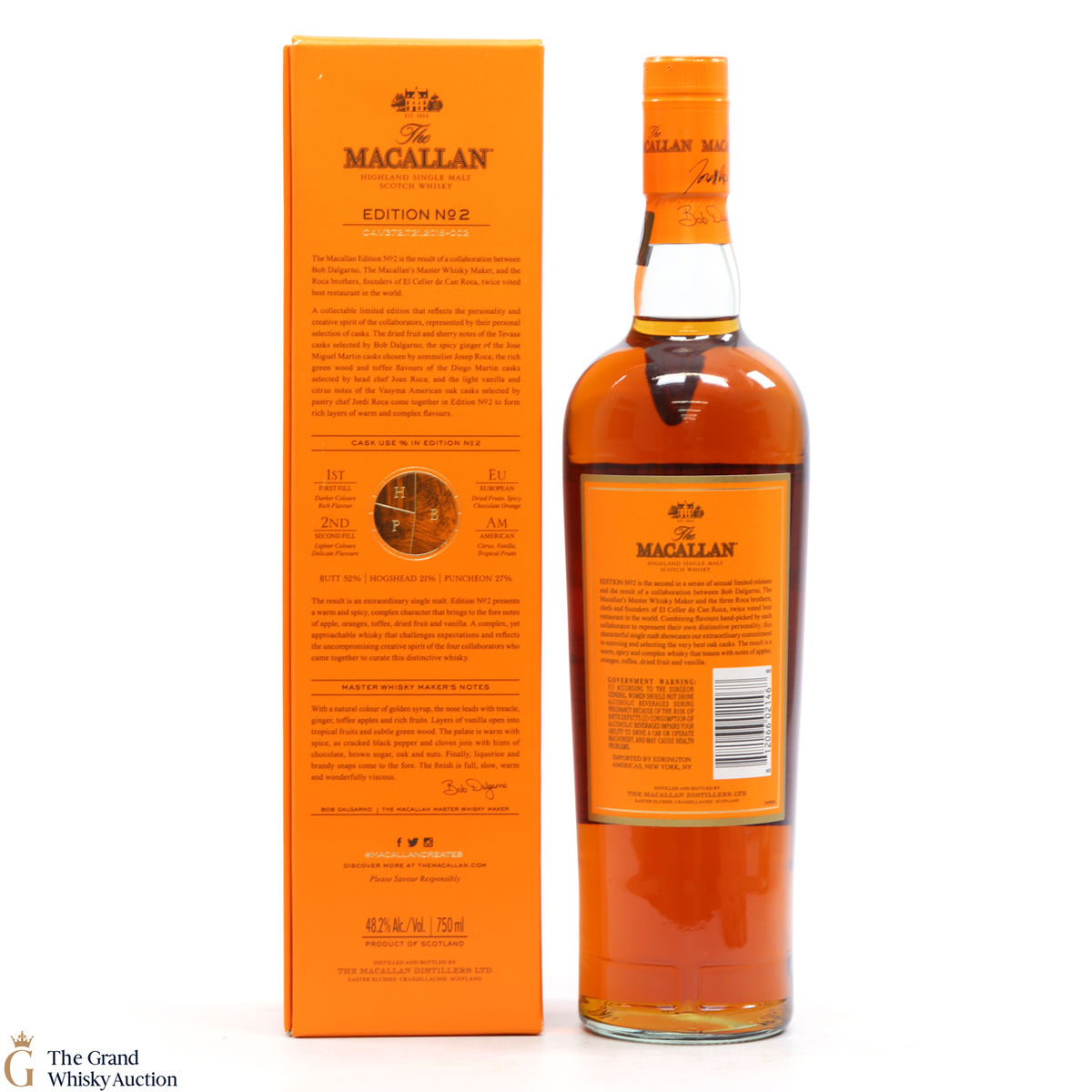 This is the second release from the Macallan Edition series. Edition No.2 is a collaboration between Macallan's master blender Bob Delgarno and legendary Spanish chefs Joan, Josep and Jordi Roca. The Rocas are the three brothers behind El Celler de Can Roca (named Best Restaurant in the World twice by Restaurant magazine). This single malt was drawn from a combination of sherry puncheons, butts and refill hogsheads.