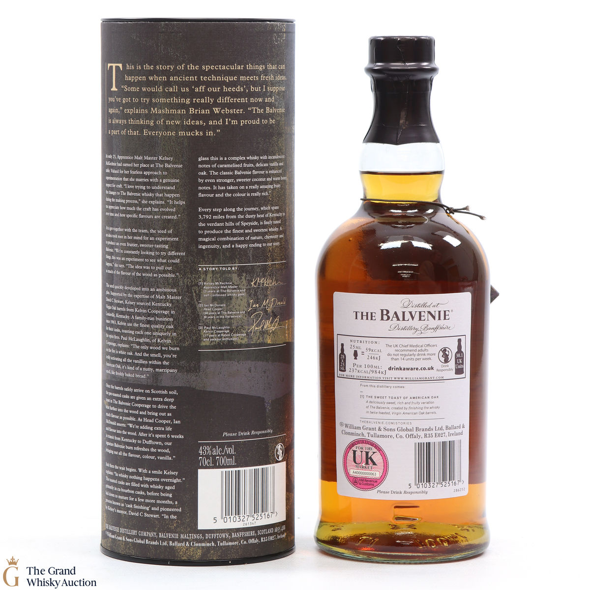 This is the introductory release from The Balvenie Stories range. Celebrating Kelsey McKechnie's idea to import virgin oak barrels from Kentucky and deeply toast them at the distillery's cooperage. They were then filled with Balvenie's ex-bourbon oak aged whisky for a finishing period.