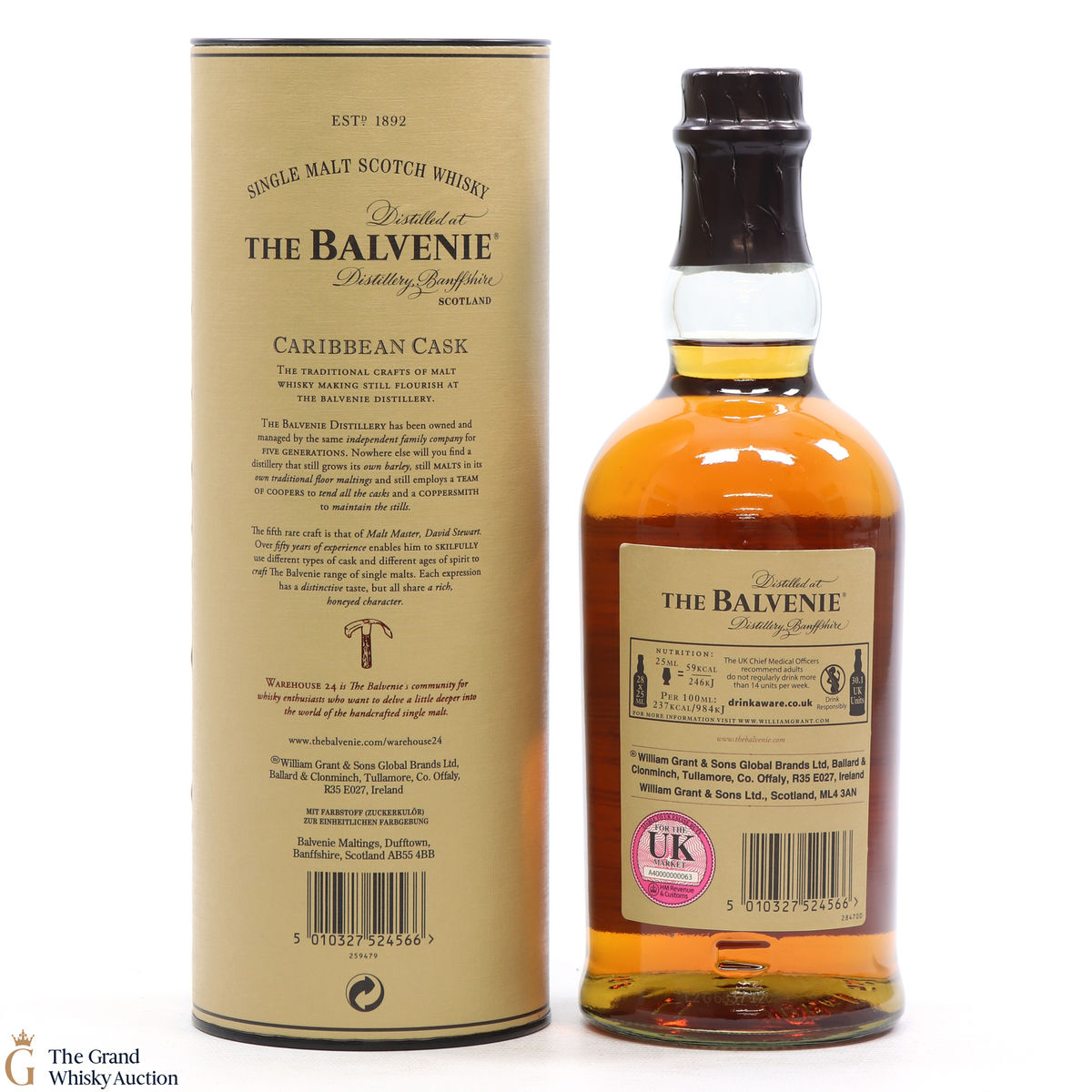 The Balvenie Caribbean Cask 14 year old has been matured in traditional oak whisky casks for 14 years, and then finished in casks that previously held Caribbean rum.