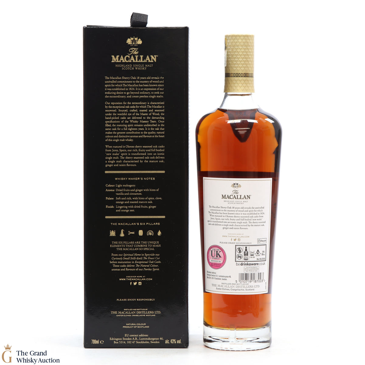 This annual release of The Macallan's popular 18 Year Old Sherry Oak is matured exclusively in sherry seasoned casks, built from both Spanish and American oak, providing a beautifully dark flavour with rich aromas.