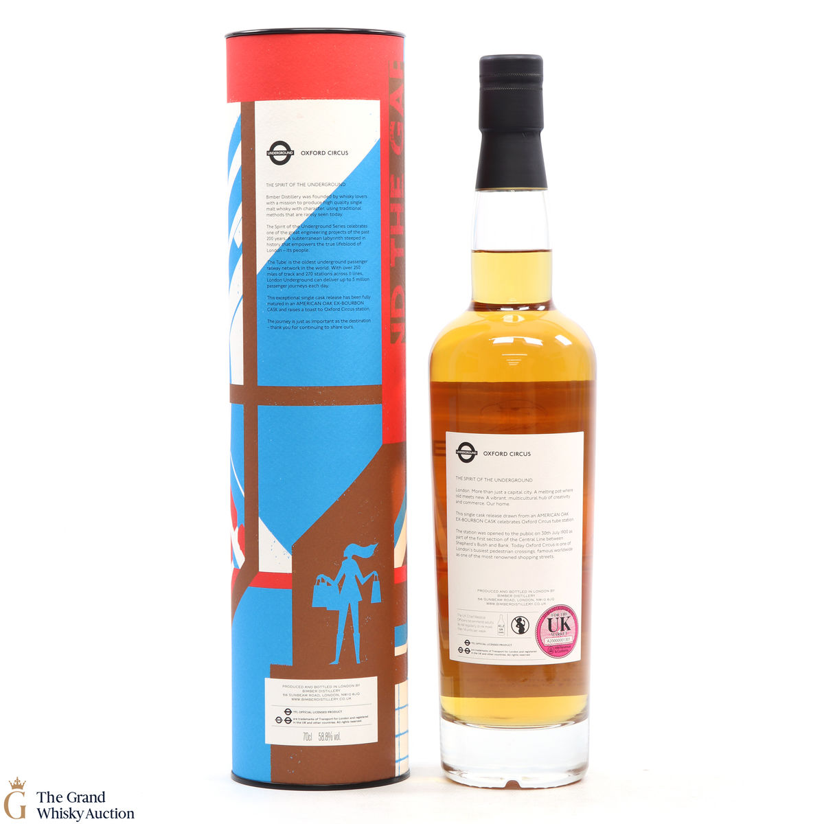 Distilled at the Bimber Distillery based in London, this single malt was matured in ex-bourbon cask #172 and bottled in May 2021 as part of The Spirit of the Underground series, given the title of Oxford Circus. Complete with its colourful packaging, this is one of only 261 bottles produced.