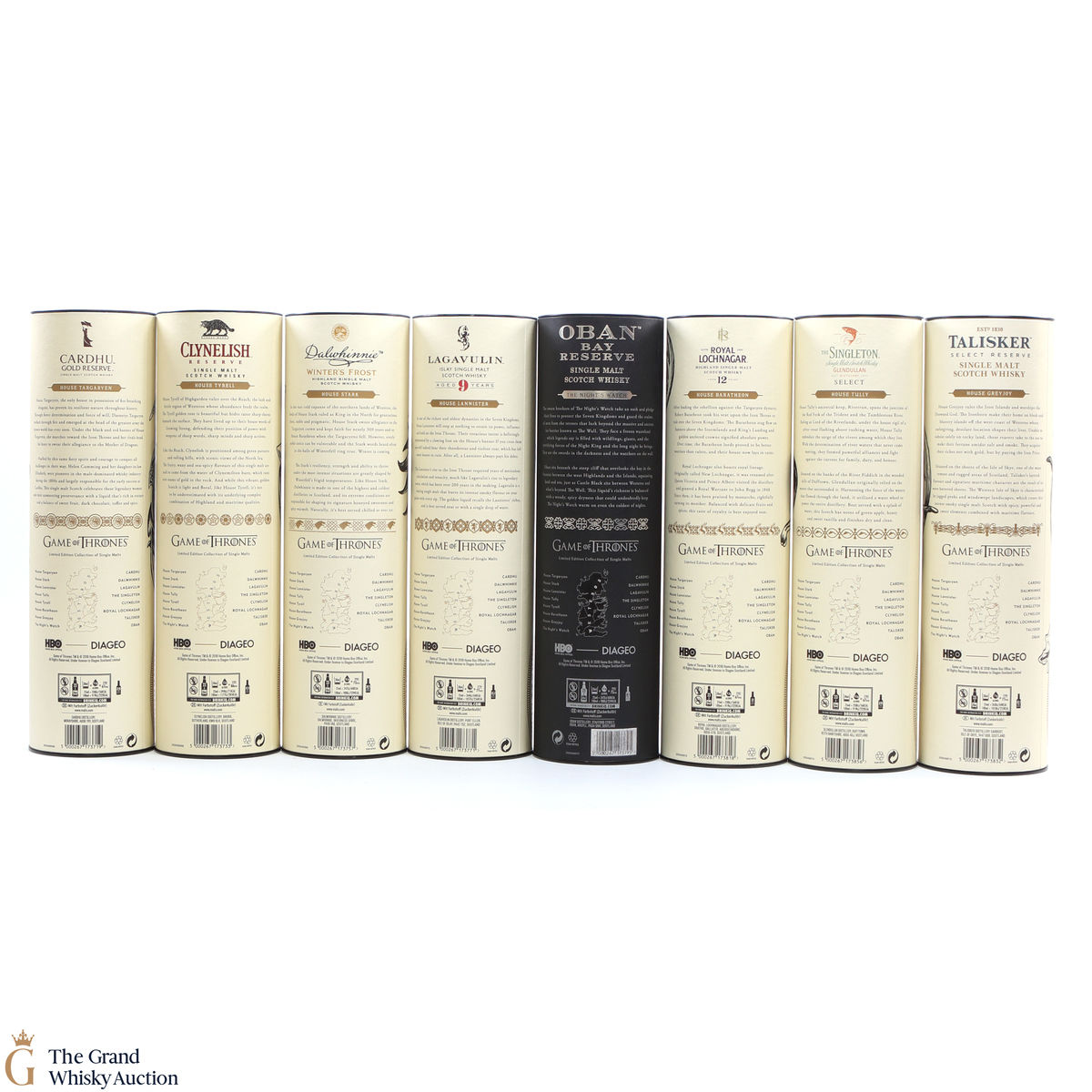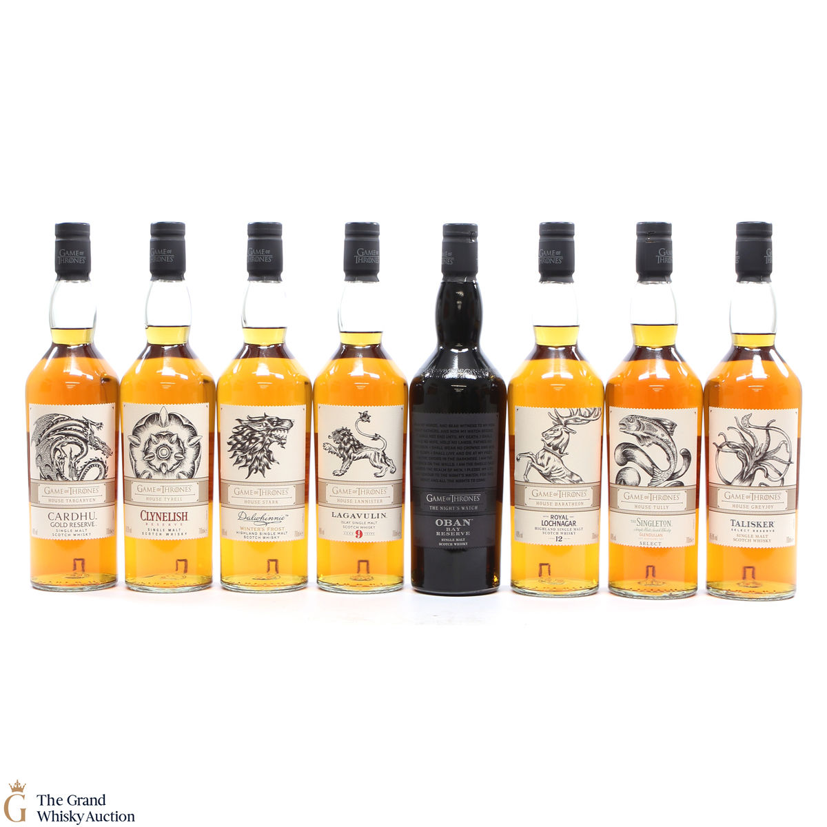 Each of the Game of Thrones Scotch whiskies has been paired with a particular house from the seven kingdoms in the television series, plus the Night’s Watch guard.