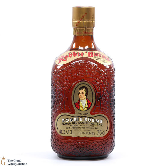 Robbie Burns Blend from the 1970s. A tribute to Robert Burns, 'combining the best of Scottish ingredients and skill wherever good company is found, Burns will be remembered and Scotch whisky will be enjoyed.'