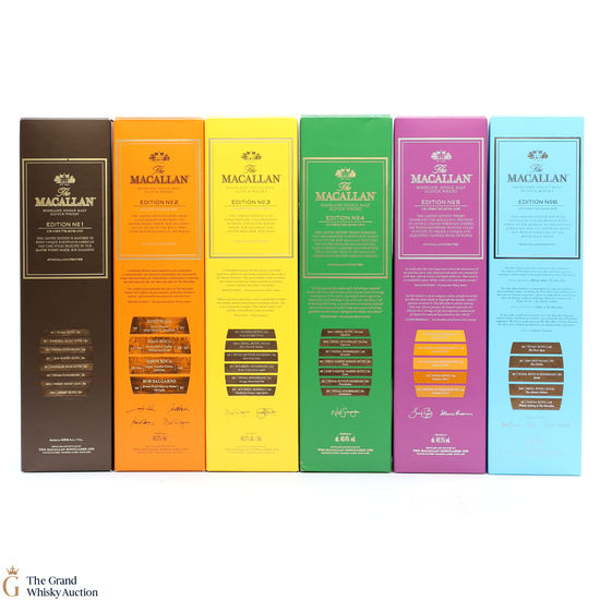 This lot brings together the Macallan Edition set to date, comprising of Edition no. 1, 2, 3 4, 5 & 6 in the annual limited edition series.