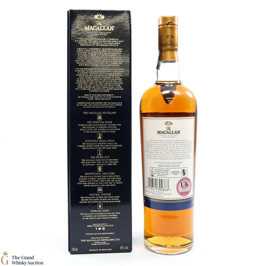 This 12 Year Old Macallan was matured in a combination of American and European Sherry oak for a minimum of 12 years. It is part of the Macallan Double Cask range, which marries the classic Macallan style and the sweetness of American oak.
