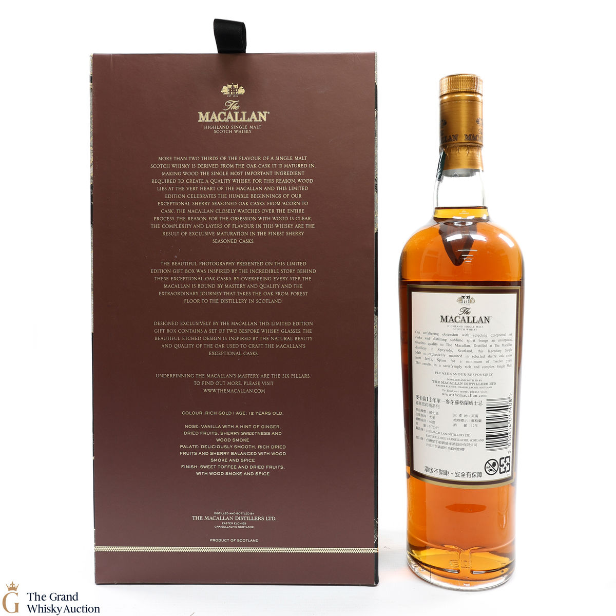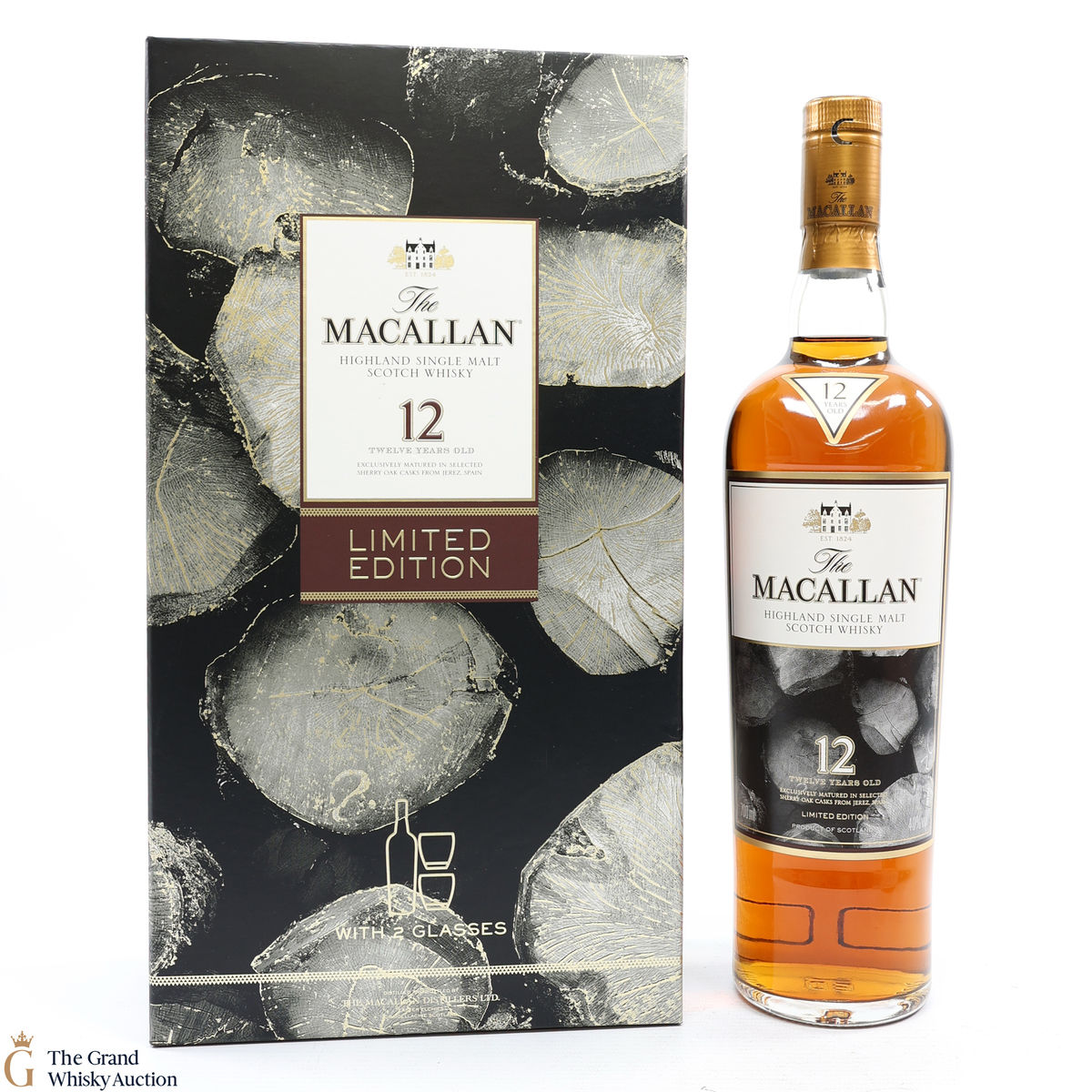 A stylish Macallan gift pack. It contains a 70cl bottle of the 12-year-old sherry oak, and two limited editions branded Macallan Whisky tumblers.