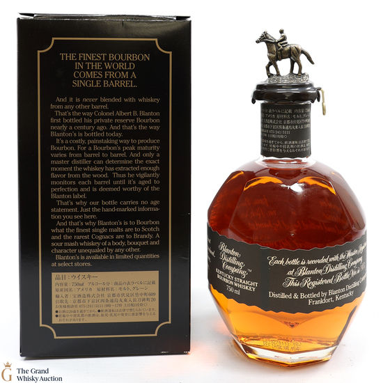PLEASE NOTE: The wax seal on Blanton's bottles are prone to cracking in transit due to their design. Therefore, as stated in our T&C’s, we do not and will not accept liability should the seal be breached, broken, split or leak in transit. Additionally, please know due to the design of the internal cardboard packaging that surrounds the top of the bottles, it too may be torn. By bidding on this lot you have understood this to be true. Insurance is for complete breakage or loss in transit only.