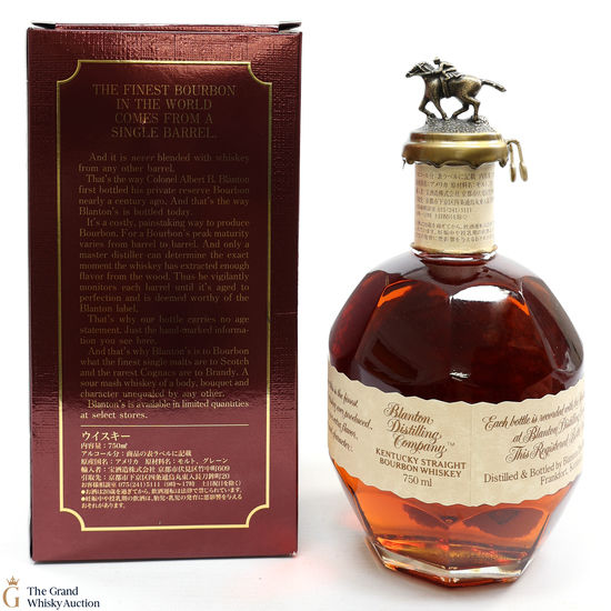 PLEASE NOTE: The wax seal on Blanton's bottles are prone to cracking in transit due to their design. Therefore, as stated in our T&C’s, we do not and will not accept liability should the seal be breached, broken, split or leak in transit. Additionally, please know due to the design of the internal cardboard packaging that surrounds the top of the bottles, it too may be torn. By bidding on this lot you have understood this to be true. Insurance is for complete breakage or loss in transit only.