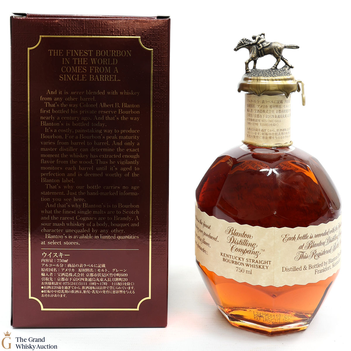PLEASE NOTE: The wax seal on Blanton's bottles are prone to cracking in transit due to their design. Therefore, as stated in our T&C’s, we do not and will not accept liability should the seal be breached, broken, split or leak in transit. Additionally, please know due to the design of the internal cardboard packaging that surrounds the top of the bottles, it too may be torn. By bidding on this lot you have understood this to be true. Insurance is for complete breakage or loss in transit only.