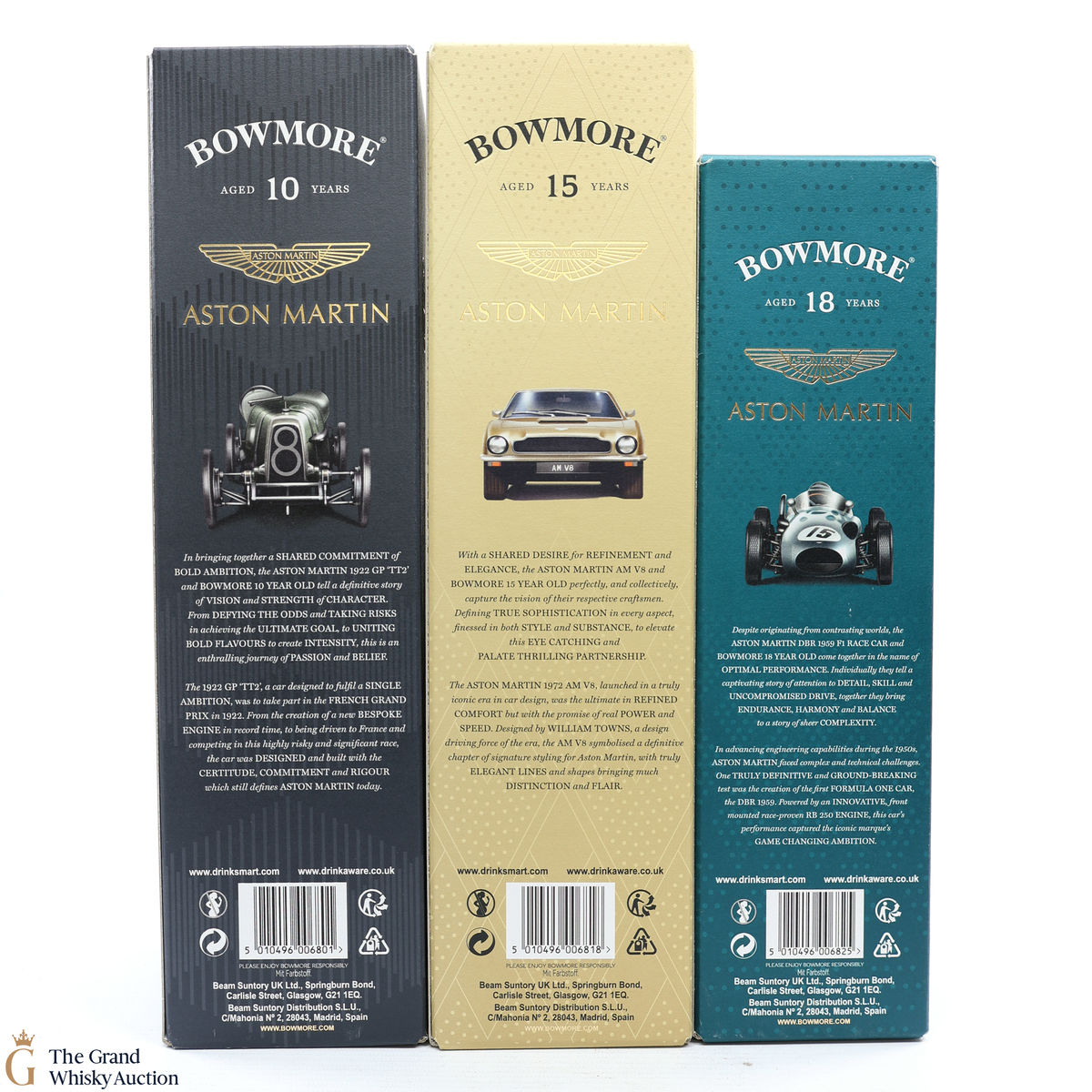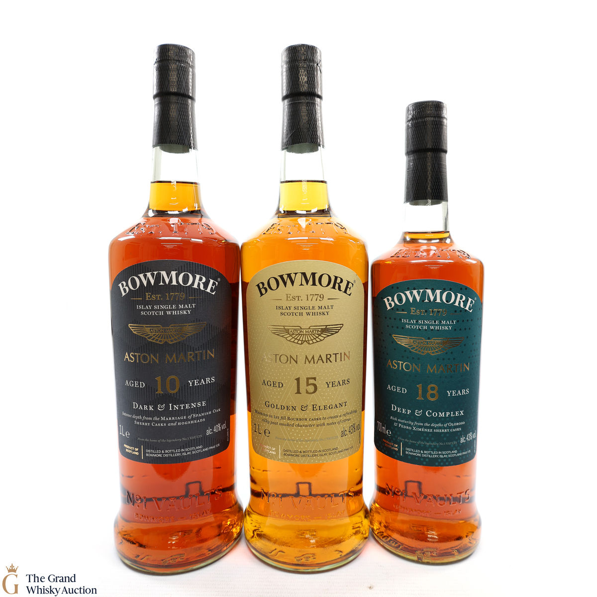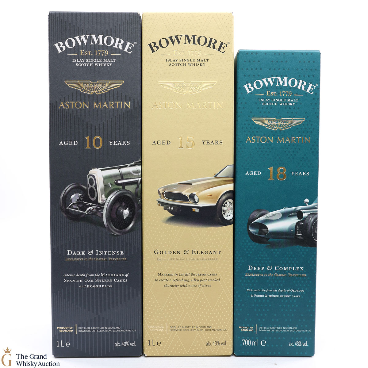 This lot includes 3 x Travel retail exclusive bottles; Edition 4, 5 & 6 from the limited BOWMORE X ASTON MARTIN collection; 2 x 1L bottles and 1 x 70cl.