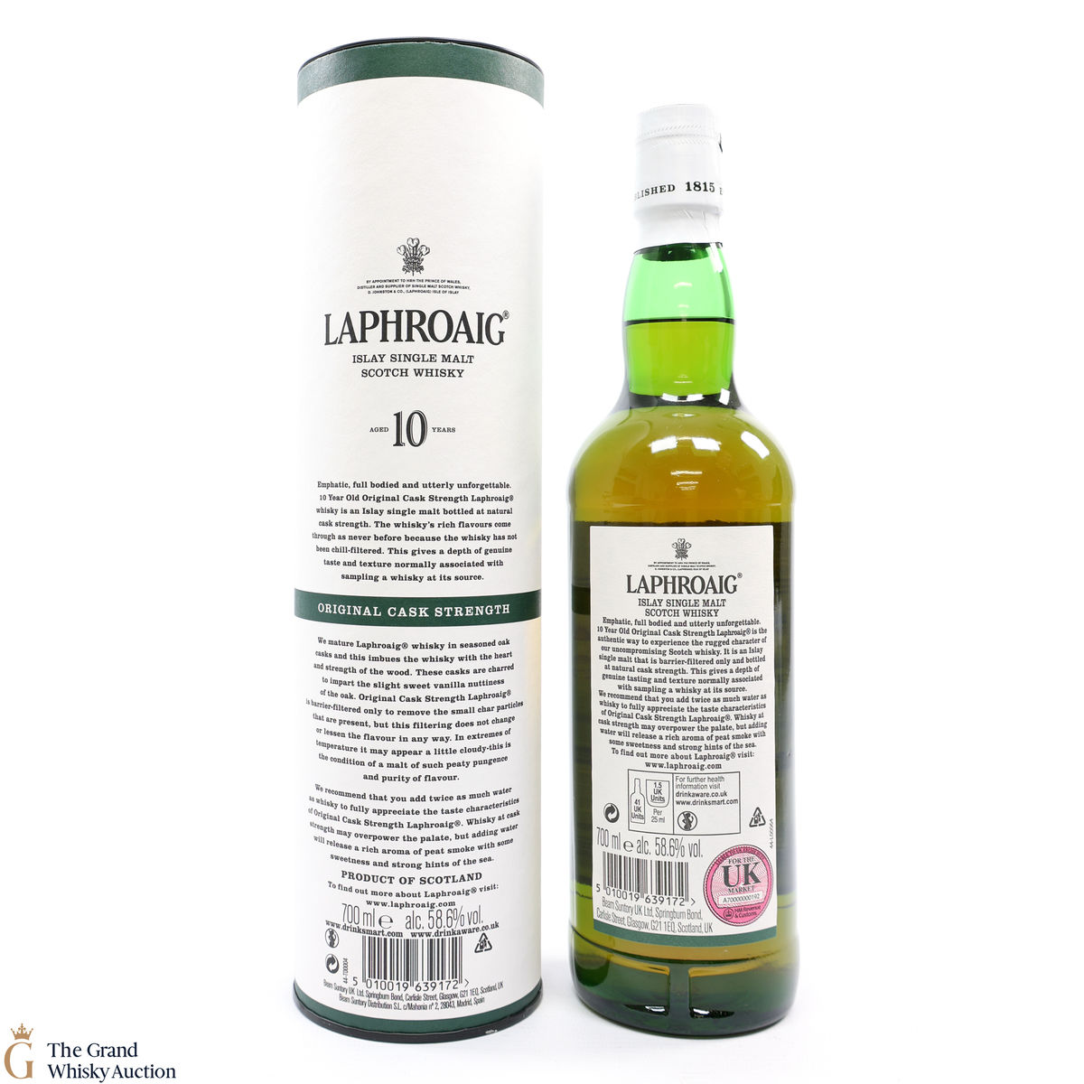 This original cask strength bottling of the medicinal 10 year old from Islay's bestselling distillery, Laphroaig. In making Laphroaig, malted barley is dried over a peat fire. The smoke from this peat, found only on Islay, gives Laphroaig its particularly rich flavour.