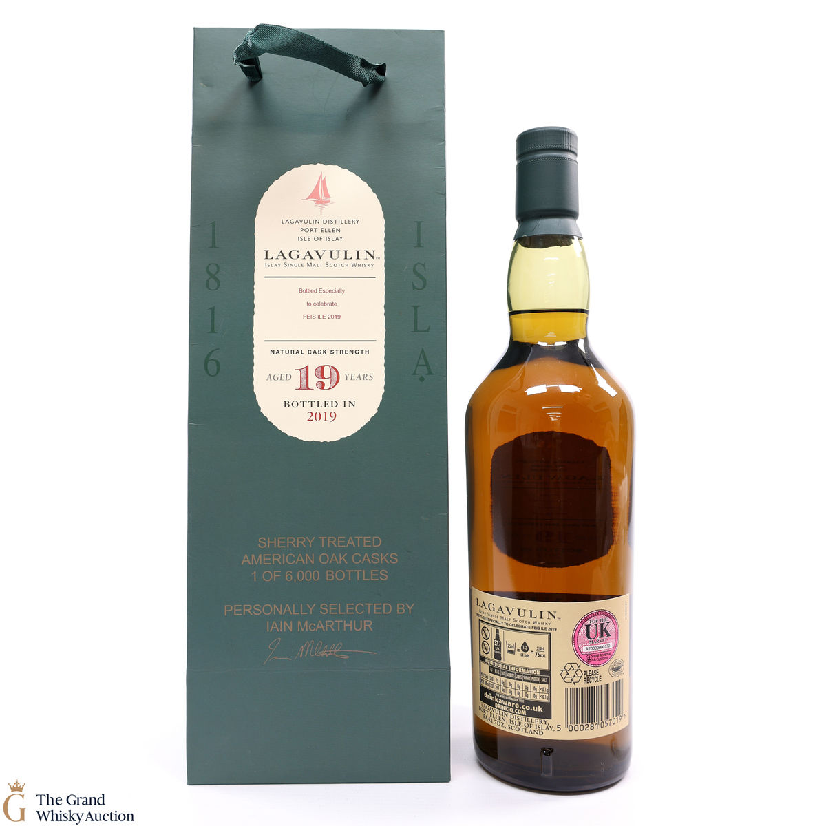 The 2019 Fèis Ìle release from Lagavulin was a 19 year old single malt, matured in three types of casks: refill American oak cask, second Sherry treated American oak cask and a European oak puncheon. 6000 bottles were released.