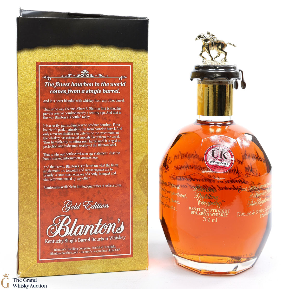 PLEASE NOTE: The wax seal on Blanton's bottles are prone to cracking in transit due to their design. Therefore, as stated in our T&C’s, we do not and will not accept liability should the seal be breached, broken, split or leak in transit. Additionally, please know due to the design of the internal cardboard packaging that surrounds the top of the bottles, it too may be torn. By bidding on this lot you have understood this to be true. Insurance is for complete breakage or loss in transit only.