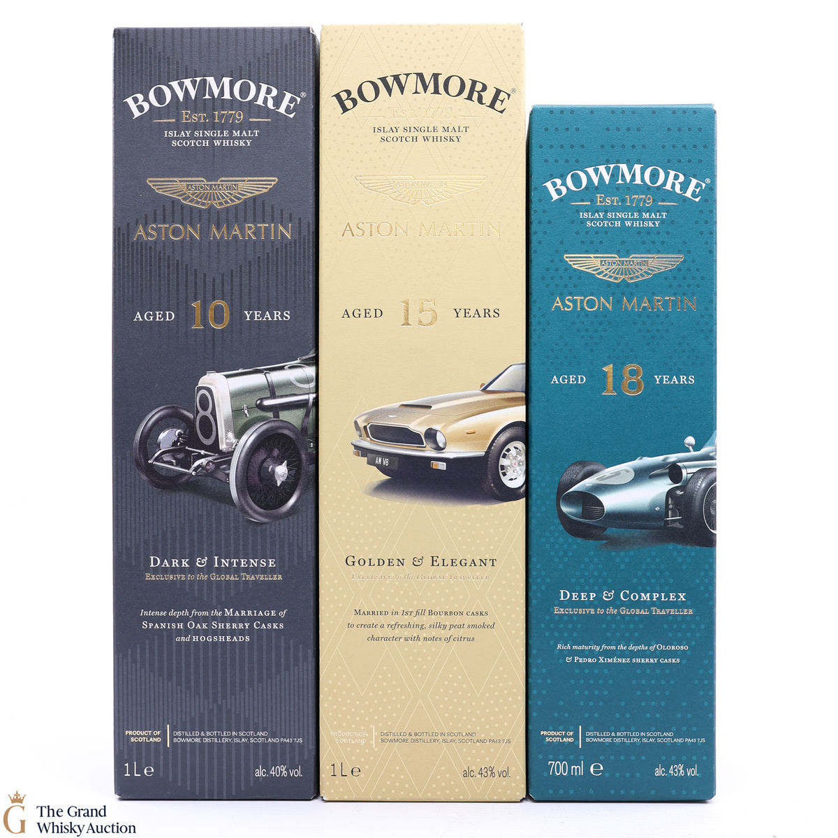 This lot includes 3 x Travel retail exclusive bottles; Edition 4, 5 & 6 from the limited BOWMORE X ASTON MARTIN collection; 2 x 1L bottles and 1 x 70cl.
