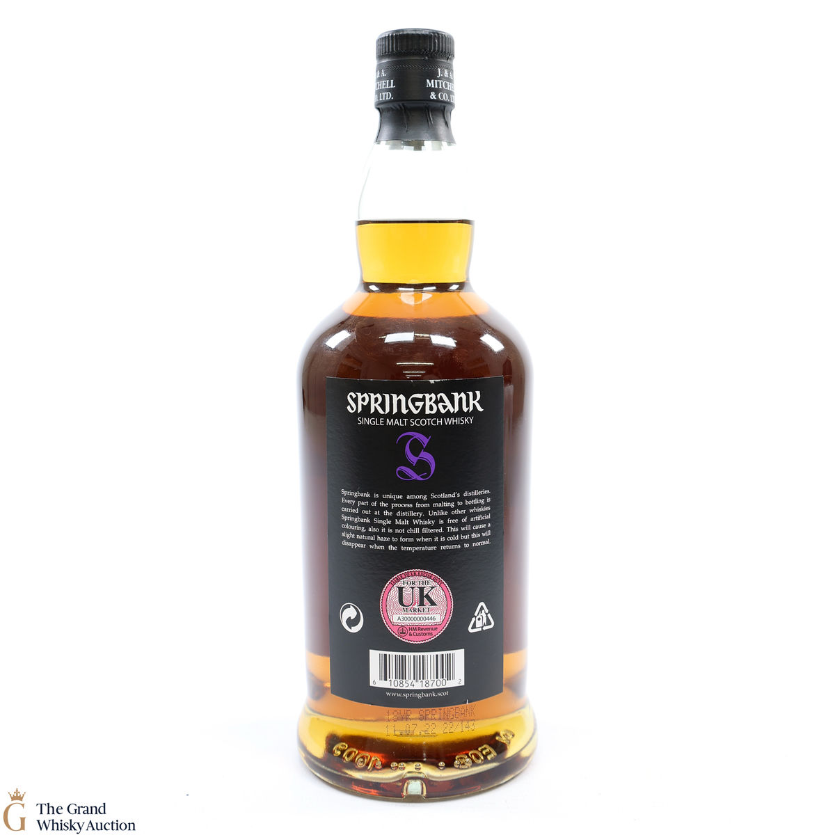 Due to the various ages of bottles and their seals, the condition of liquid is at the buyer's discretion and no claim can be lodged against failure/leakage in transit. Loss and breakage cover is available at 3% of the hammer price as standard. If the lot is not insured, no claim can be lodged against the courier or The Grand Whisky Auction for breakage or loss in transit.