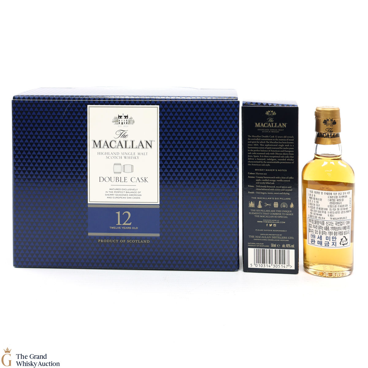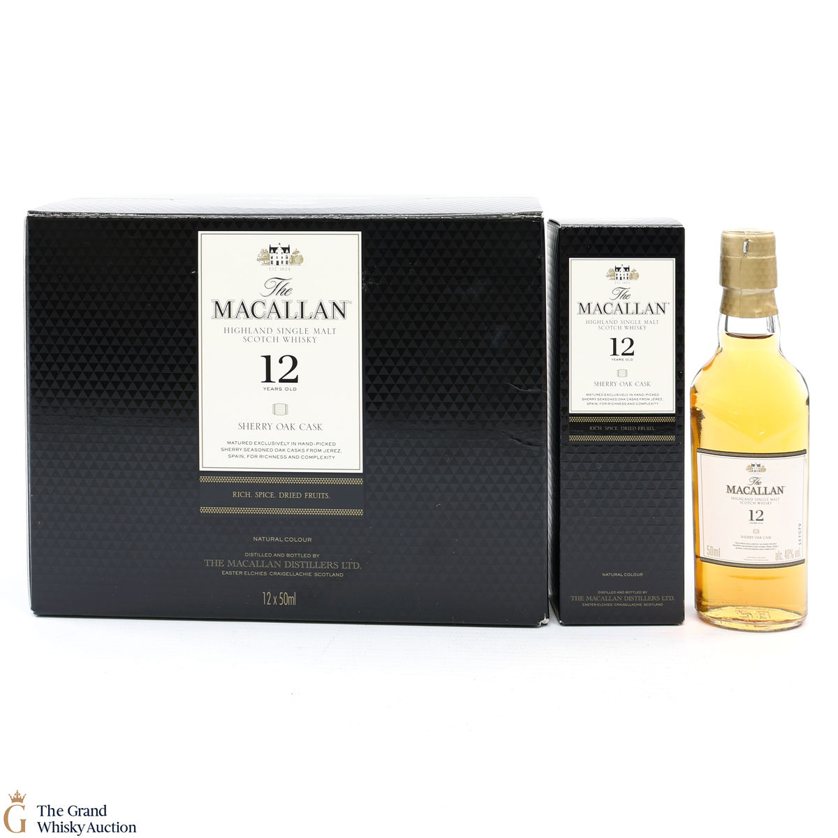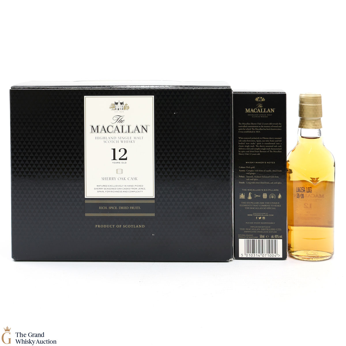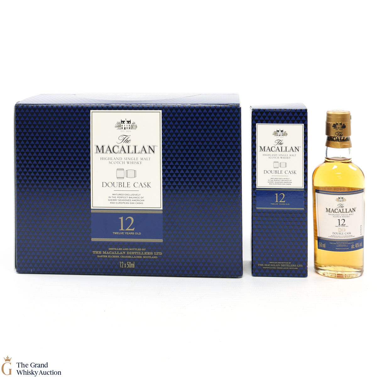 This lot includes 12 x 5cl bottles of Macallan 12-Year-Old - Sherry Oak & 12 x 5cl bottles of Macallan 12-Year-Old - Double Cask. A total of 24 x 5cl bottles.
