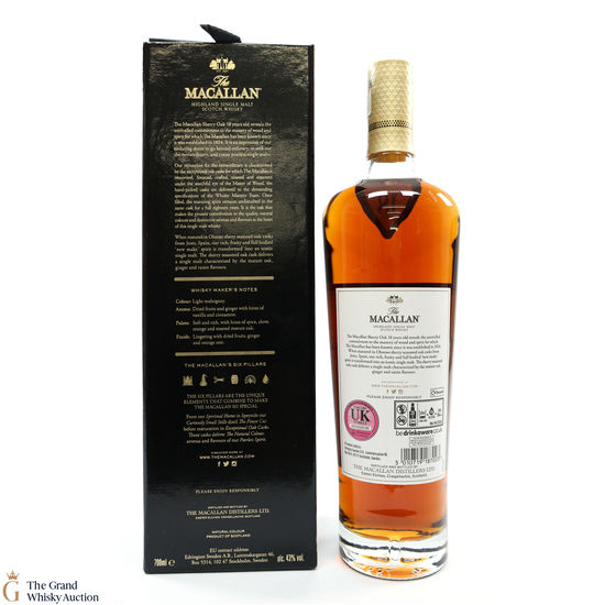 This annual release of The Macallan's popular 18 Year Old Sherry Oak is matured exclusively in sherry seasoned casks, built from both Spanish and American oak, providing a beautifully dark flavour with rich aromas.