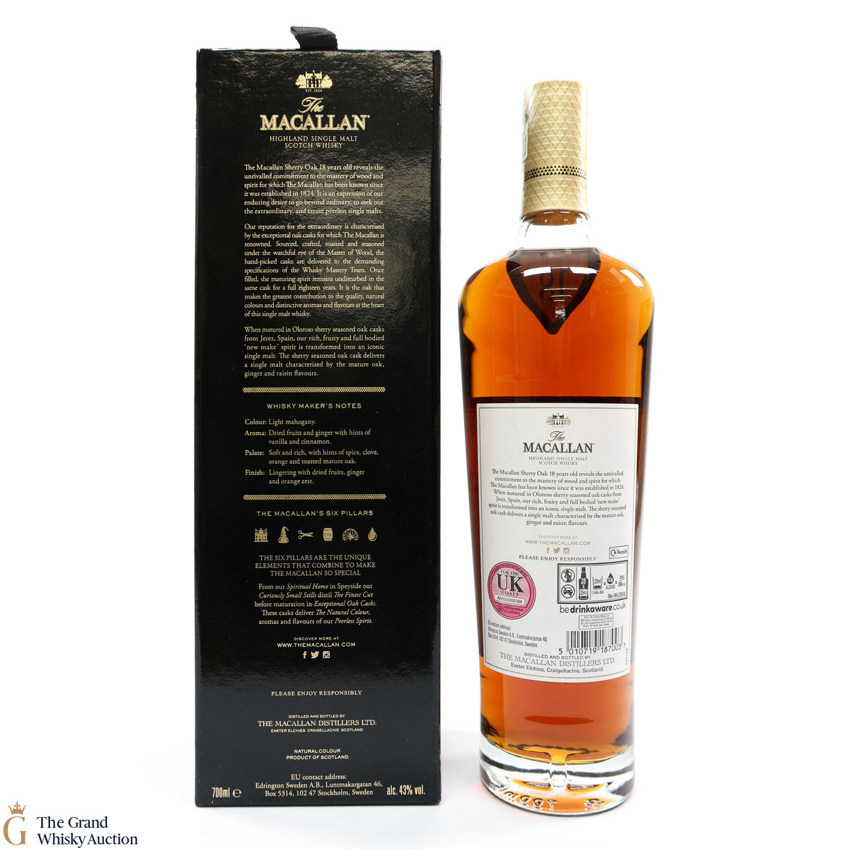 This annual release of The Macallan's popular 18 Year Old Sherry Oak is matured exclusively in sherry seasoned casks, built from both Spanish and American oak, providing a beautifully dark flavour with rich aromas.
