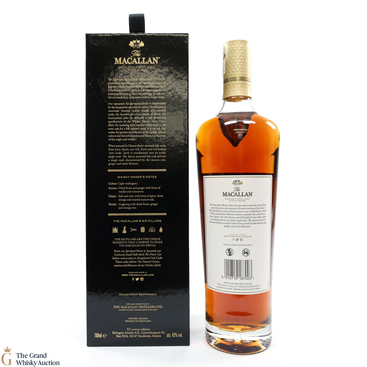 This annual release of The Macallan's popular 18 Year Old Sherry Oak is matured exclusively in sherry seasoned casks, built from both Spanish and American oak, providing a beautifully dark flavour with rich aromas.