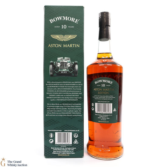 Distilled at the Bowmore Distillery in Islay, this 10 year old single malt was matured in both Spanish oak sherry casks and hogsheads. This is the first edition bottling to celebrate the collaboration with Aston Martin, named Dark and Intense it is available exclusively to global travellers. Each of the three editions of the Aston Martin Series features a different car, the 10 year old features the 1932 Le Mans Works, a car that defines bold confidence.