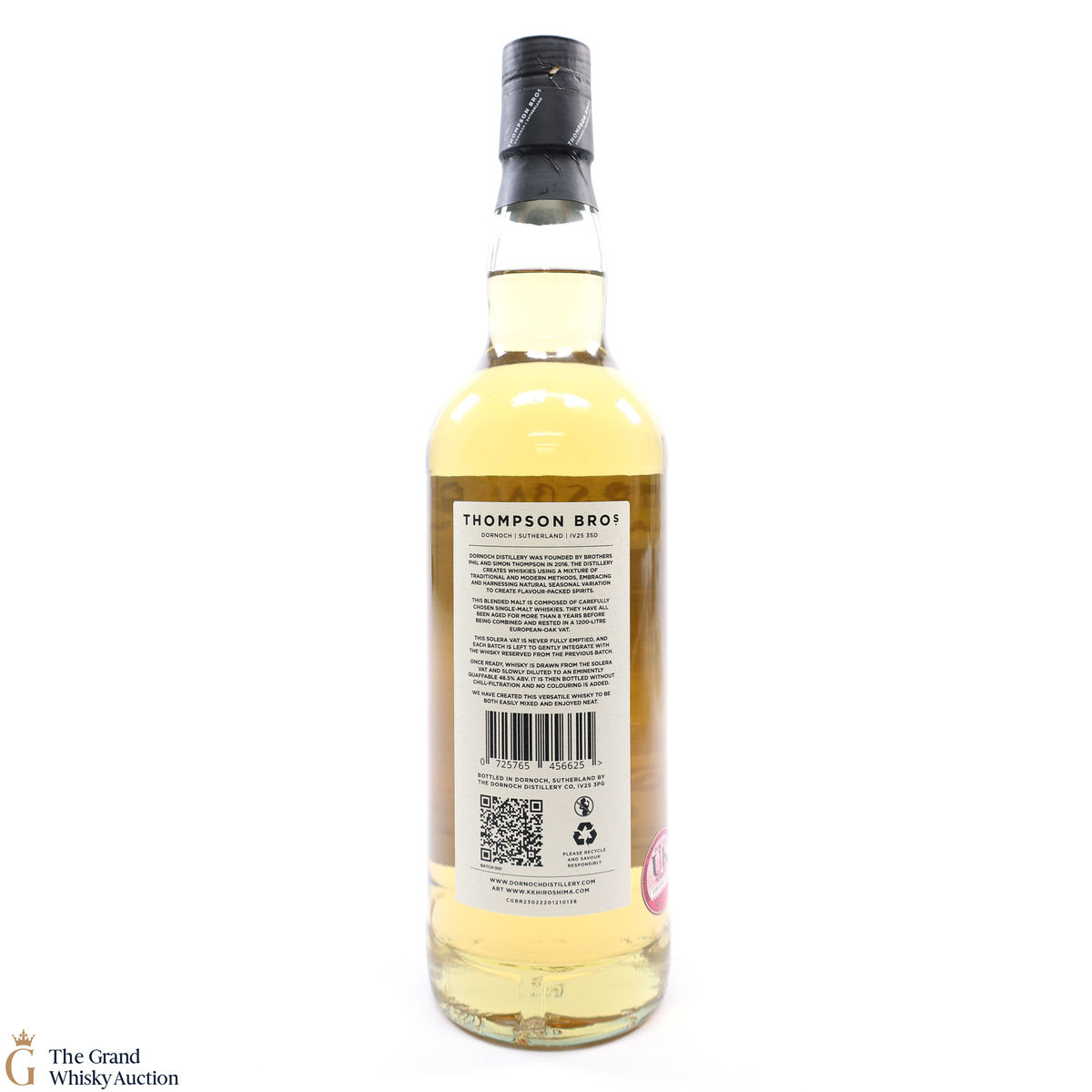 The Thompson Bros have used a toasted 1200-litre European oak in the process of creating this blended malt. Each time they bottle they use just two-thirds of the blend, leaving the base within the vat as the starter for the next batch. Aged for over 8 years and bottled at 48.5%.