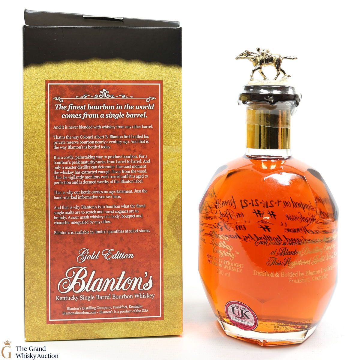 PLEASE NOTE: The wax seal on Blanton's bottles are prone to cracking in transit due to their design. Therefore, as stated in our T&C’s, we do not and will not accept liability should the seal be breached, broken, split or leak in transit. Additionally, please know due to the design of the internal cardboard packaging that surrounds the top of the bottles, it too may be torn. By bidding on this lot you have understood this to be true. Insurance is for complete breakage or loss in transit only.