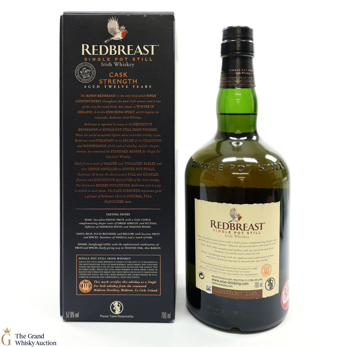 This is the first batch of Redbreast Cask Strength released in 2020. Bottled at 57.6%, this 12-year-old single pot still Irish whisky was matured in Oak casks.
