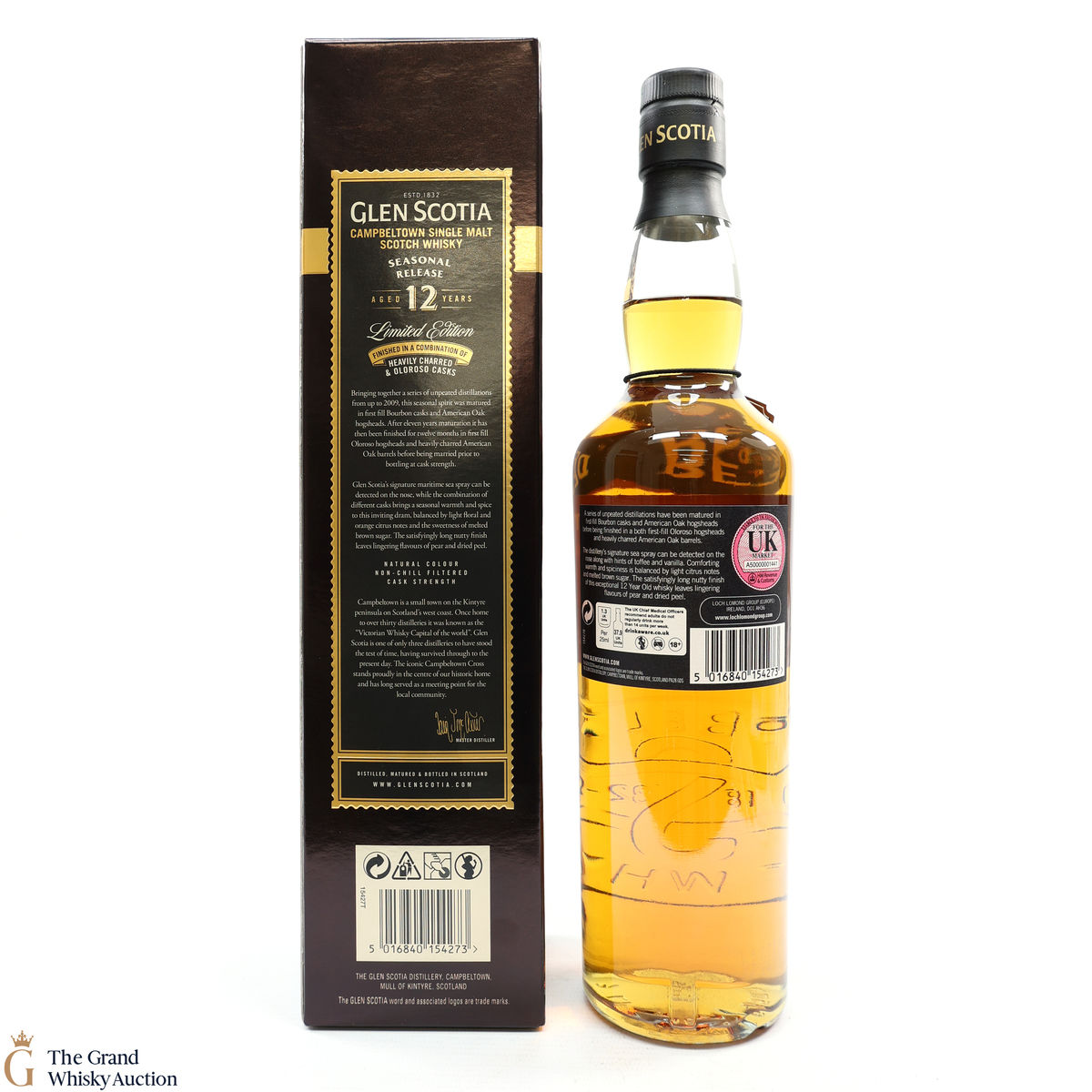 This 12-year-old Glen Scotia was initially allowed to rest in a combination of first-fill bourbon and American oak casks for 11 years. Then, finished for 12 months in a combination of first-fill Oloroso sherry hogsheads and heavily charred American oak barrels. Bottled at 54.7%.