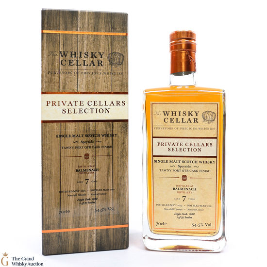 From the independent bottle The Whisky Cellar for their Private Cellars Selection, this 7-year-old 2012 Balmenach single cask was given a finishing period in a Tawny port Quarter Cask. #186B Bottled at 54.5%.