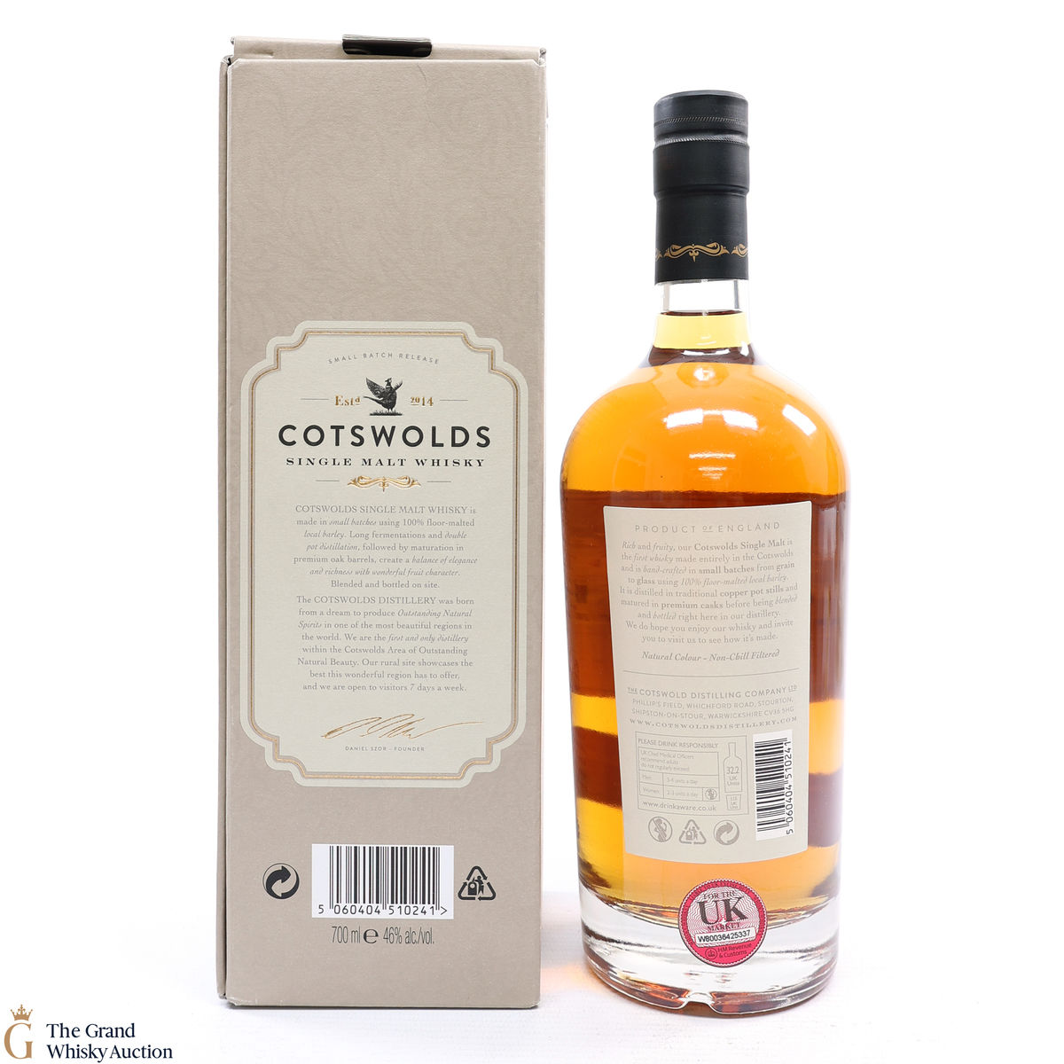 Cotswolds Single Malt Whisky is the first whisky ever distilled in the Cotswolds. They use 100% locally grown, floor-malted barley.