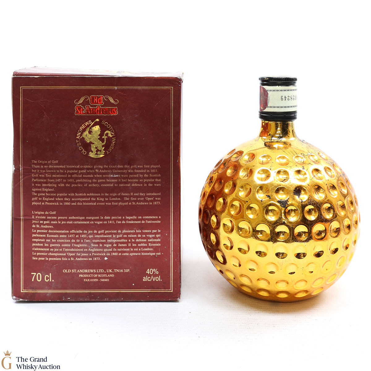 Old St Andrews Clubhouse, a blended whisky in the bottle form of a golf ball-shaped decanter.