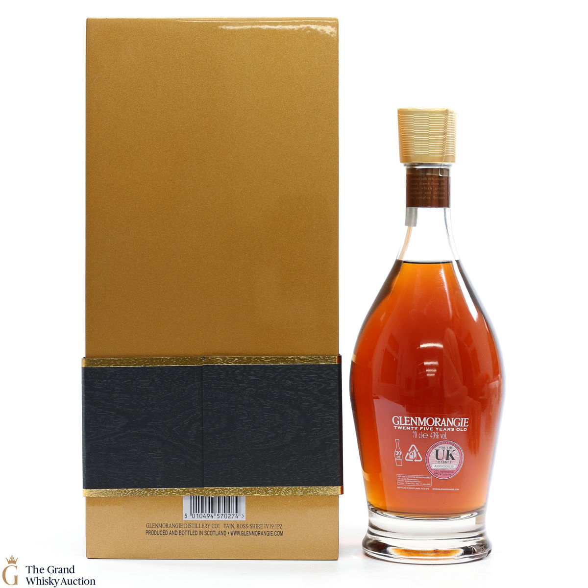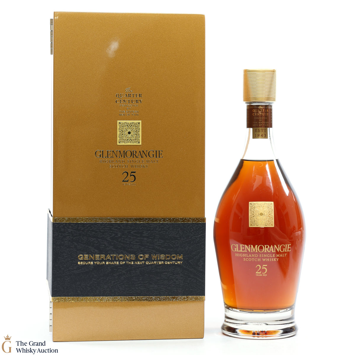 Possibly one of Glenmorangie's most striking presentations of a 25 year old whisky. A golden box to match the liquid within that has been matured in both sherry and Burgundy casks.