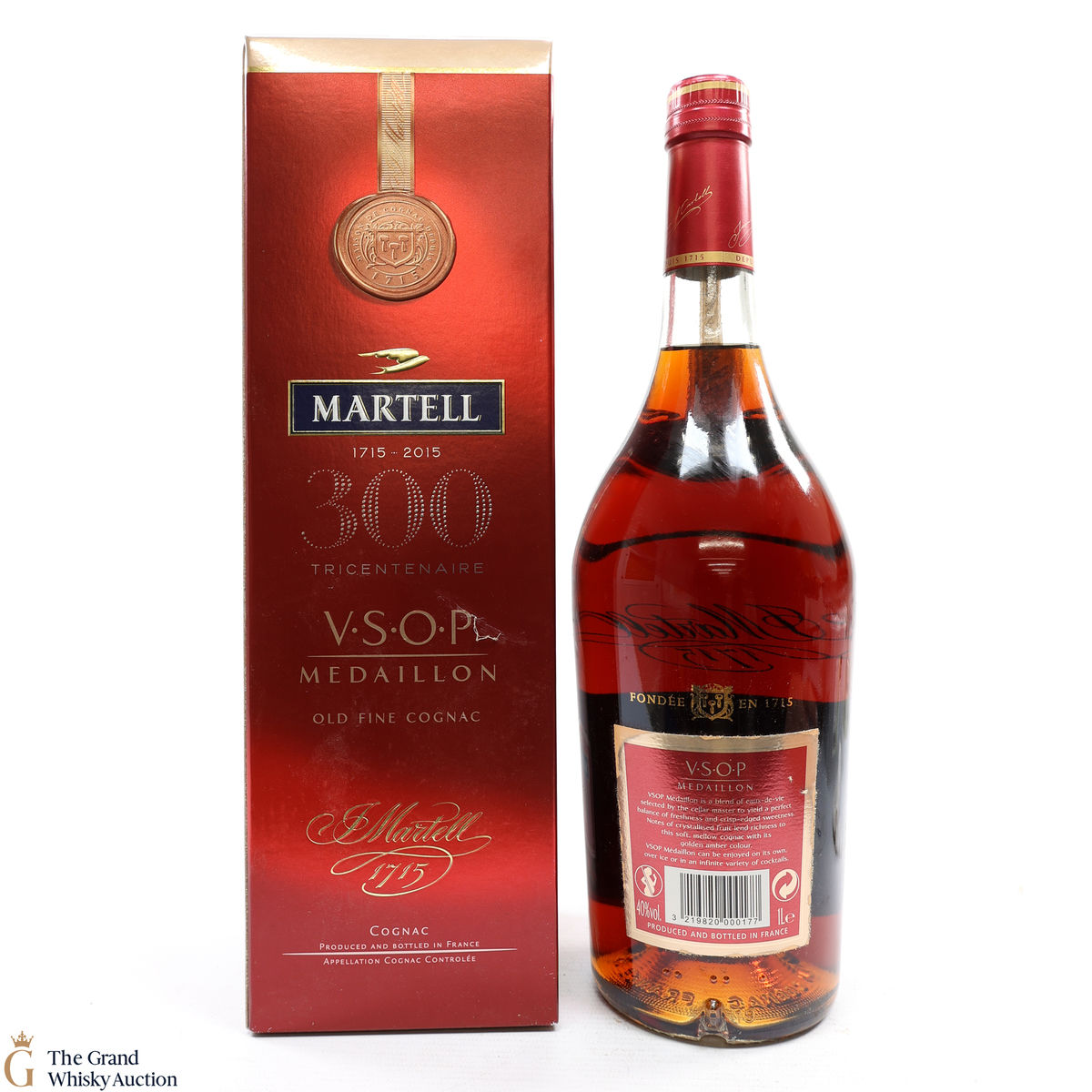 This is a 1L bottle of Martell - Medallion V.S.O.P cognac, bottled at 40%. Released to celebrate the Martell 300th Anniversary (1715 - 2015).