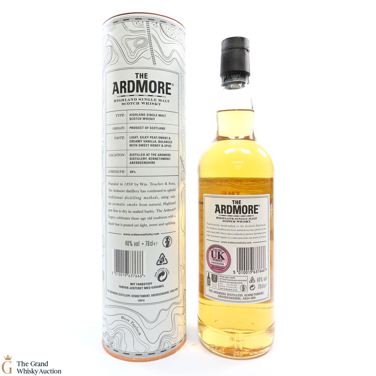 Ardmore Legacy was launched in 2014 to replace Ardmore Traditional. Ardmore Legacy is made with 80% peated and 20% unpeated malt.