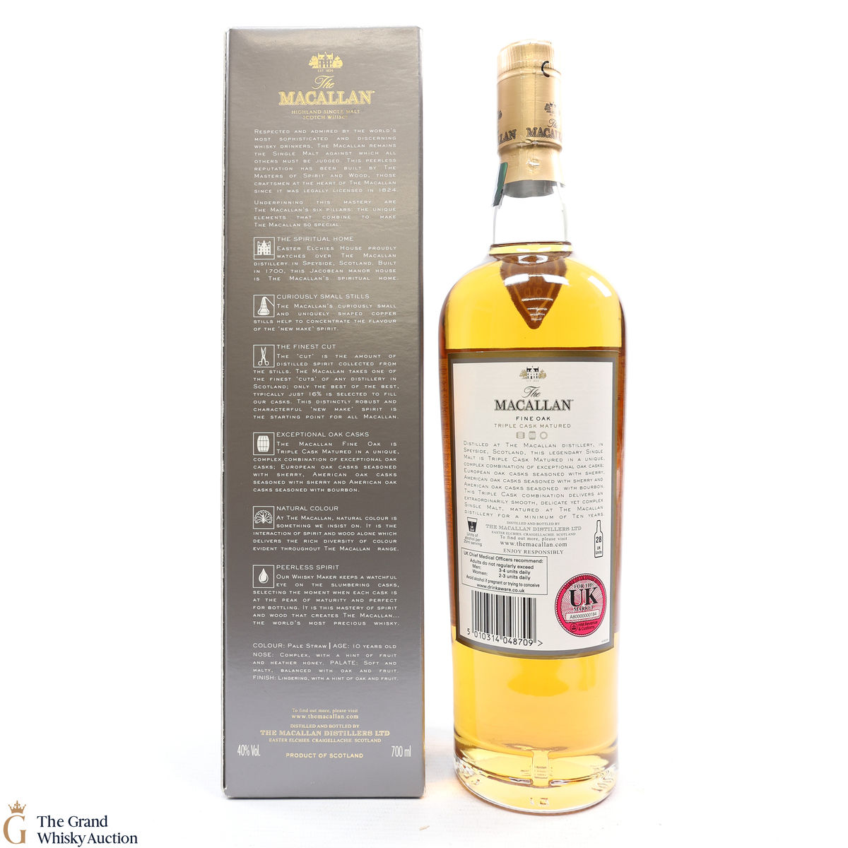 This 10-year-old single malt is part of Macallan's Fine Oak, triple cask matured range. It has been matured for ten years in three oak cask types; Europen oak seasoned with sherry, American oak seasoned with sherry and American oak seasoned with bourbon. This bottling has been discontinued.