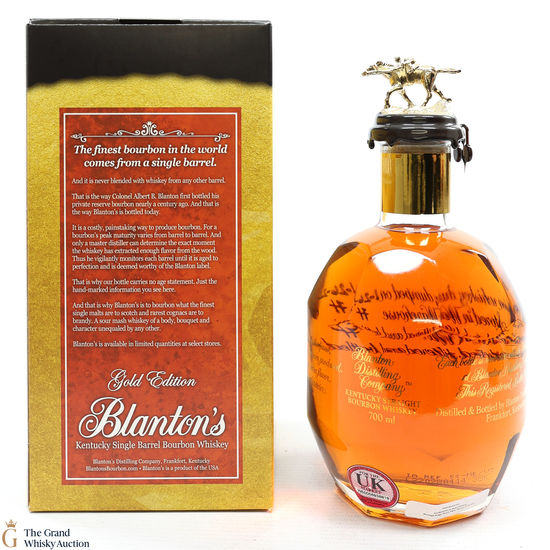PLEASE NOTE: The wax seal on Blanton's bottles are prone to cracking in transit due to their design. Therefore, as stated in our T&C’s, we do not and will not accept liability should the seal be breached, broken, split or leak in transit. Additionally, please know due to the design of the internal cardboard packaging that surrounds the top of the bottles, it too may be torn. By bidding on this lot you have understood this to be true. Insurance is for complete breakage or loss in transit only.