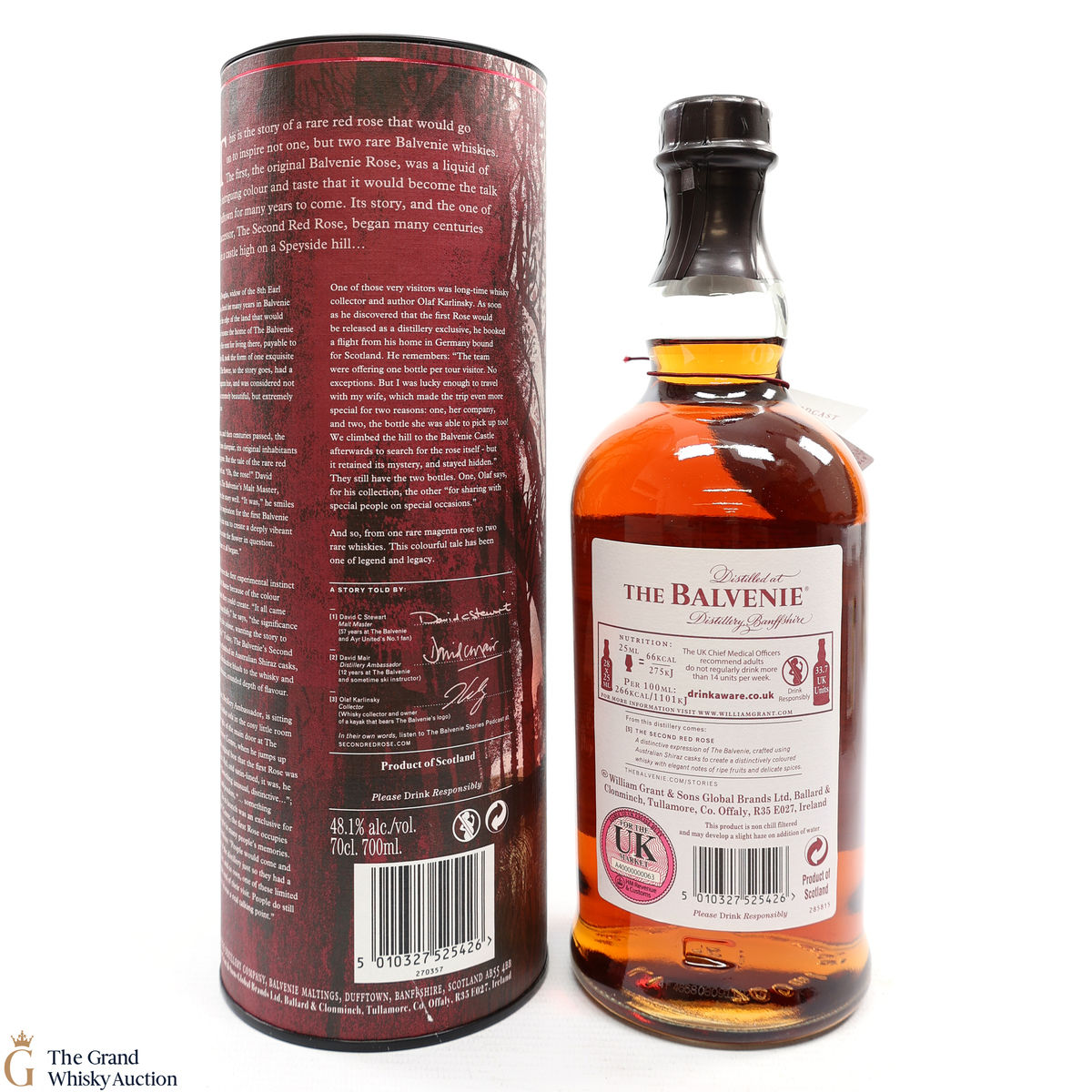 Inspired by the history of Balvenie Castle, this single malt was matured for a total of 21 years, being finished in Australian Shiraz Casks. The story of David C Stewart has created two extraordinary red roses, this is the second red rose and story number 5 in the series. Bottled at 48.1% ABV.