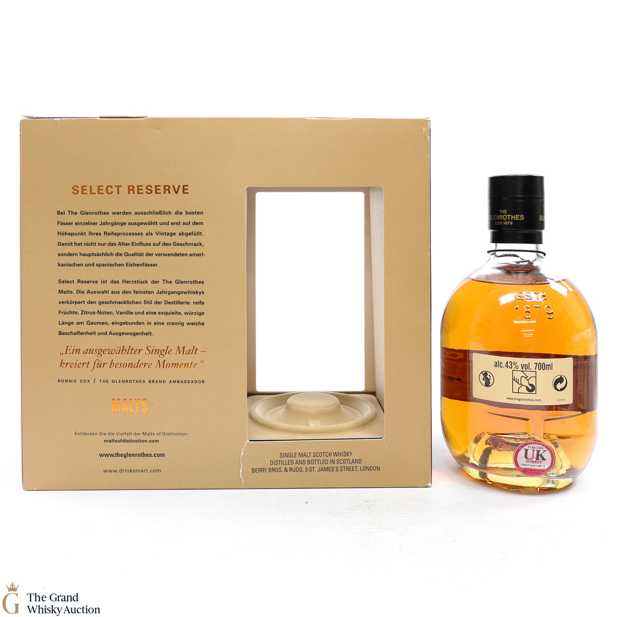 Due to the various ages of bottles and their seals, the condition of liquid is at the buyer's discretion and no claim can be lodged against failure/leakage in transit. Loss and breakage cover is available at 3% of the hammer price as standard. If the lot is not insured, no claim can be lodged against the courier or The Grand Whisky Auction for breakage or loss in transit.