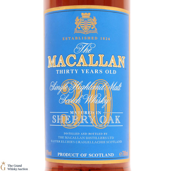 Macallan 30 Year Old Sherry Oak which was matured exclusively in Jerez, Dry Oloroso Sherry Oak casks. This bottling is an absolute classic from Macallan and would have been released in the late 1990's / early 2000's.