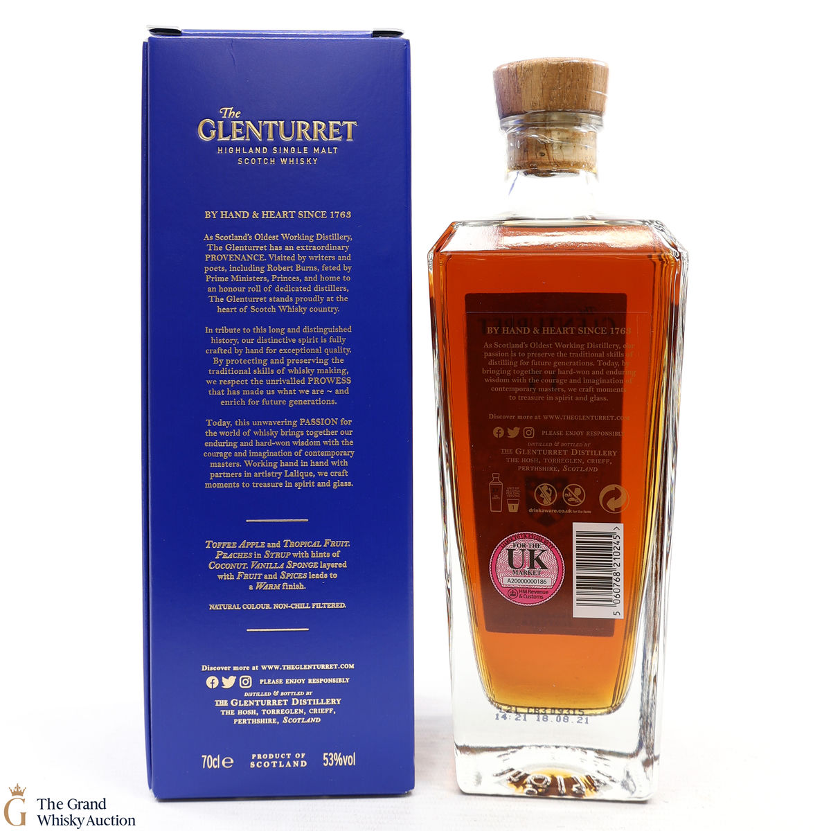 Due to the various ages of bottles and their seals, the condition of liquid is at the buyer's discretion and no claim can be lodged against failure/leakage in transit. Loss and breakage cover is available at 3% of the hammer price as standard. If the lot is not insured, no claim can be lodged against the courier or The Grand Whisky Auction for breakage or loss in transit.
