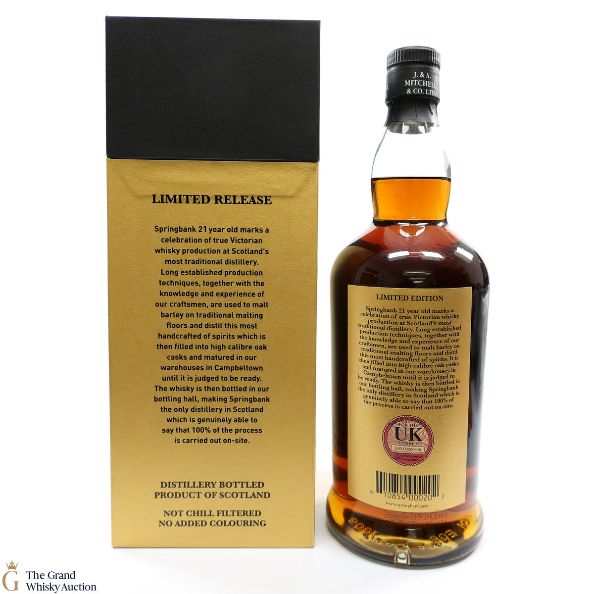 Due to the various ages of bottles and their seals, the condition of liquid is at the buyer's discretion and no claim can be lodged against failure/leakage in transit. Loss and breakage cover is available at 3% of the hammer price as standard. If the lot is not insured, no claim can be lodged against the courier or The Grand Whisky Auction for breakage or loss in transit.