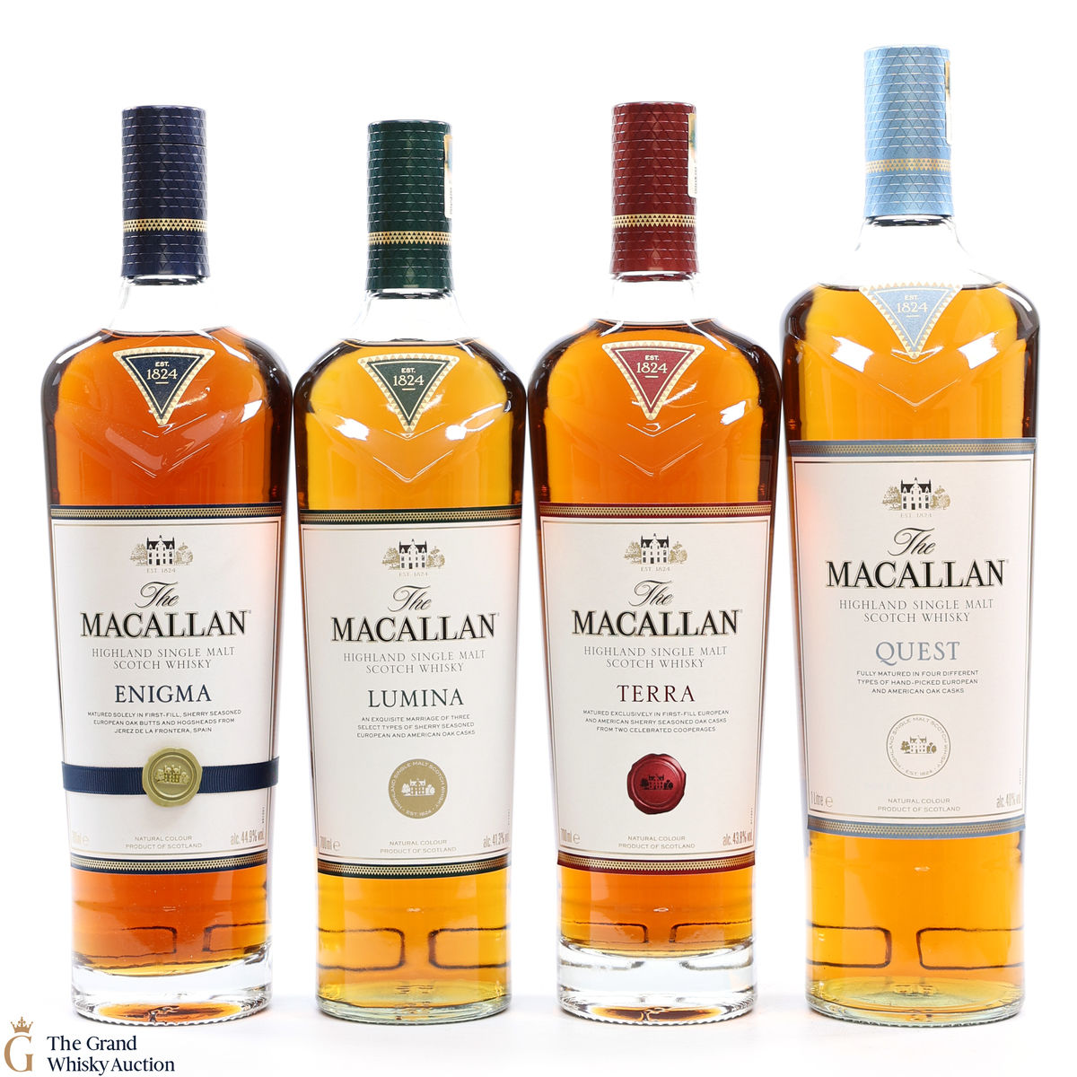 - Enigma: Enigma is at the top end of Macallan's Quest Collection drawn exclusively from European oak Sherry seasons casks from one cooperage in Jerez de la Frontera, Spain. 70cl, 44.9% ABV.