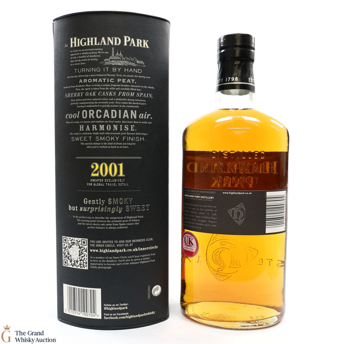 A 2001 vintage Highland Park originally released for the travel retail market, which was distilled in 2001 and bottled in 2012. Made with a high proportion of first-fill American oak casks.