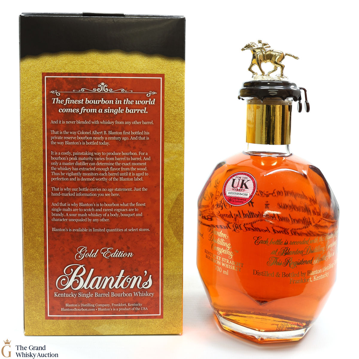 PLEASE NOTE: The wax seal on Blanton's bottles are prone to cracking in transit due to their design. Therefore, as stated in our T&C’s, we do not and will not accept liability should the seal be breached, broken, split or leak in transit. Additionally, please know due to the design of the internal cardboard packaging that surrounds the top of the bottles, it too may be torn. By bidding on this lot you have understood this to be true. Insurance is for complete breakage or loss in transit only.