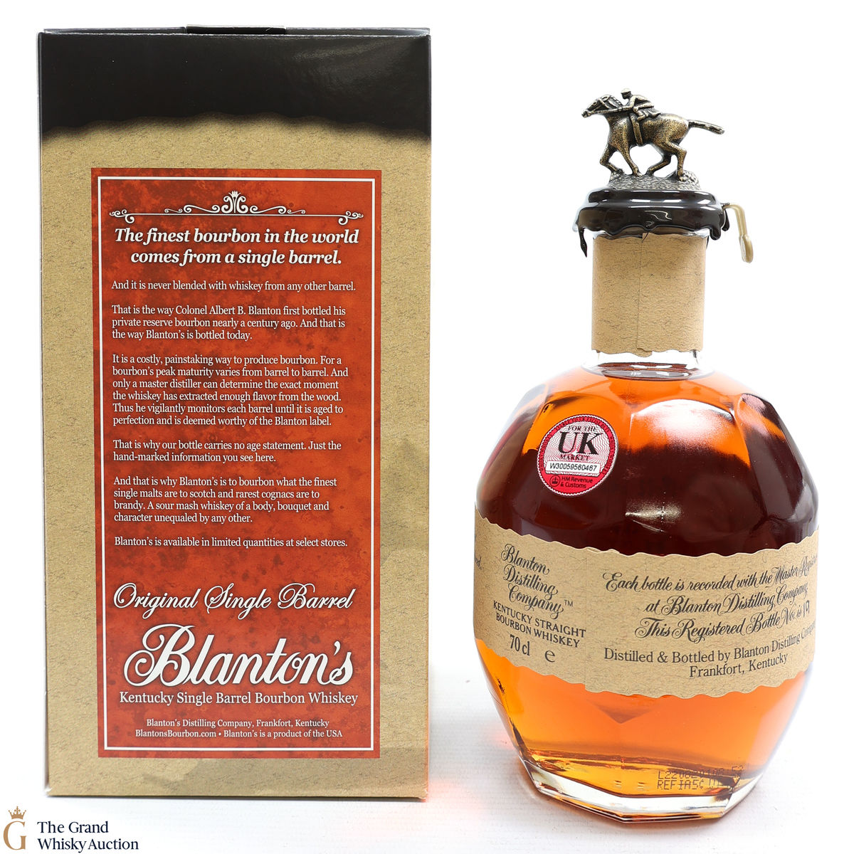 PLEASE NOTE: The wax seal on Blanton's bottles are prone to cracking in transit due to their design. Therefore, as stated in our T&C’s, we do not and will not accept liability should the seal be breached, broken, split or leak in transit. Additionally, please know due to the design of the internal cardboard packaging that surrounds the top of the bottles, it too may be torn. By bidding on this lot you have understood this to be true. Insurance is for complete breakage or loss in transit only.