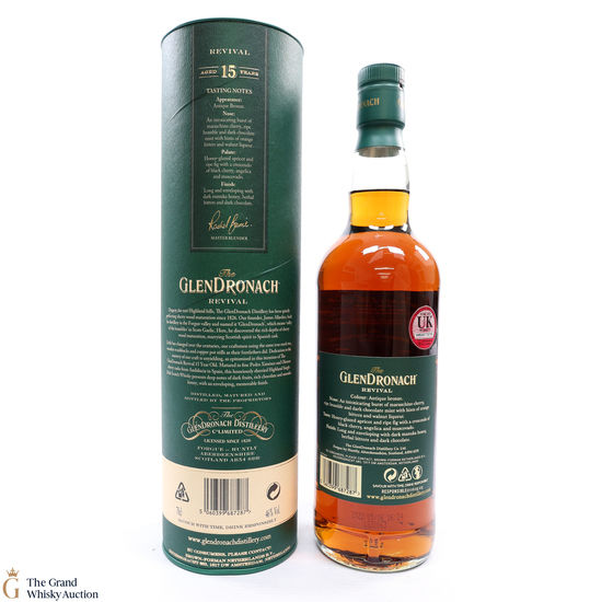 GlenDronach's 15 Year Old Revival was sadly discontinued in 2015 by the distillery due to lack of available stocks. However, stocks have been replenished and The GlenDronach 15 Year Old Revival has returned. This bottling was matured in Oloroso sherry casks.