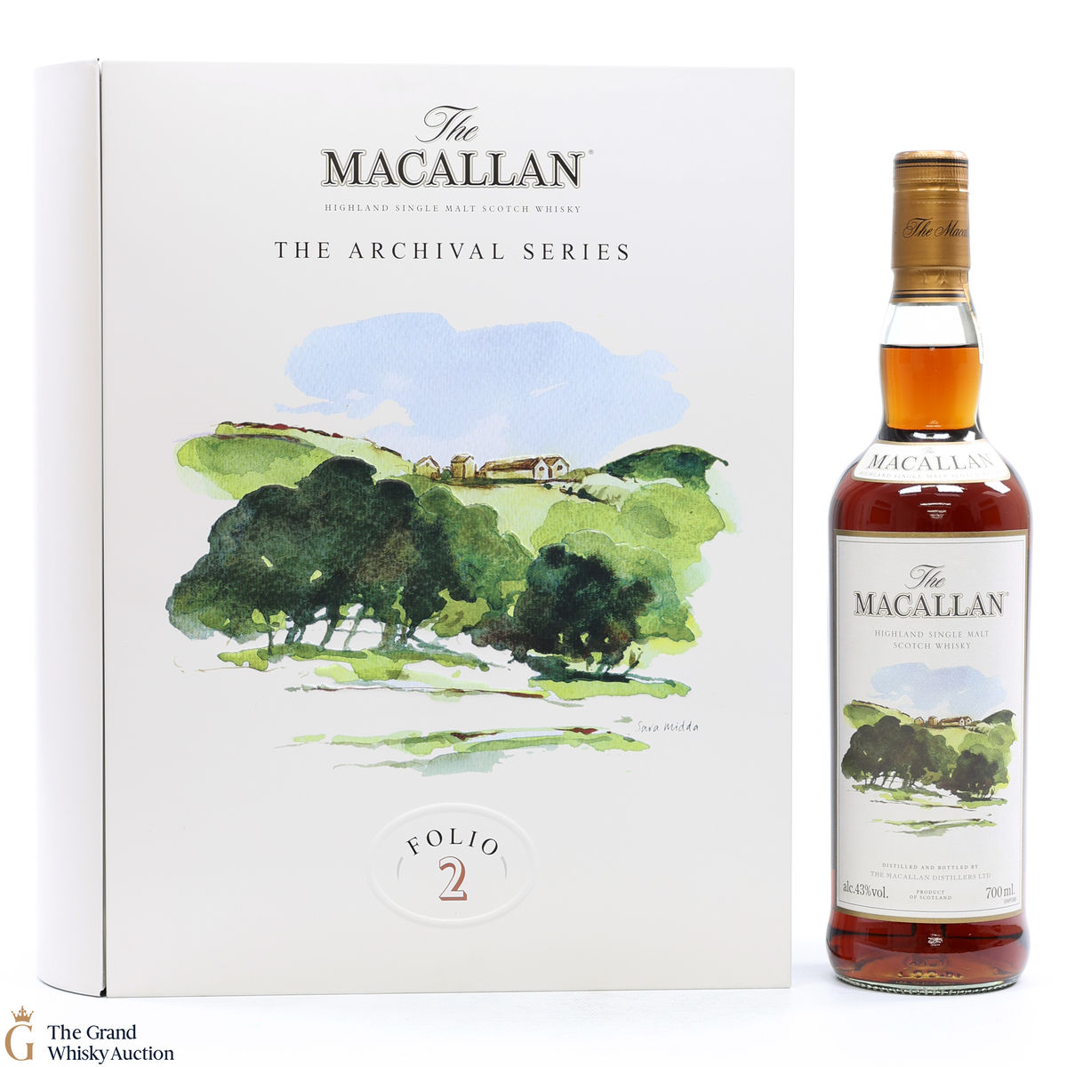 Folio 2: The second edition from The Macallan Archival Series. This distillery-exclusive bottle was released in 2017 and was limited to 2000 bottles. This 12-year-old single malt had been matured in sherry casks and bottled at 43% ABV. Presented in a book-shaped tin case and comes with a hardback book which revisits The Macallan's original print, press & film advertising campaign from 1980-1994. The front image is a watercolour painted by artist Sara Midd. Bottled at 43% ABV, 70cl.