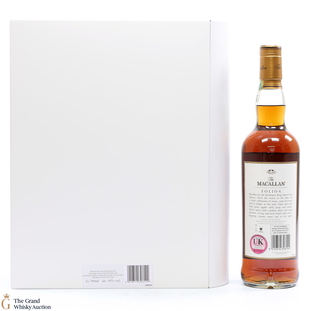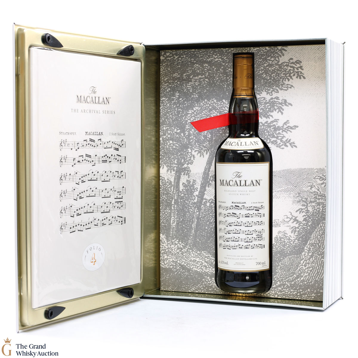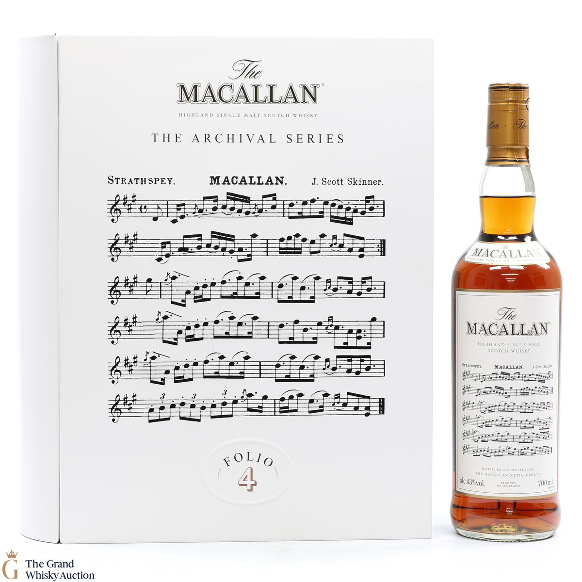Folio 4: The fourth edition in the Archival Series from The Macallan. Folio 4 remembers the legendary advertising campaigns of the 1970s, 1980s and 1990s that brought The Macallan to the public’s attention outside of Scotland. It is presented in a beautiful book-shaped, tin case. It features an advertisement including a Strathspey composed by James Scott Skinner (1843-1927). The advert notes that Skinner was so moved by his favourite malt he created a unique piece of music featuring his signature lilting notes with the simple catchphrase: “The Macallan. The Malt.” Bottled at 43% ABV, 70cl.