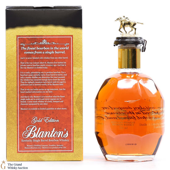 PLEASE NOTE: The wax seal on Blanton's bottles are prone to cracking in transit due to their design. Therefore, as stated in our T&C’s, we do not and will not accept liability should the seal be breached, broken, split or leak in transit. Additionally, please know due to the design of the internal cardboard packaging that surrounds the top of the bottles, it too may be torn. By bidding on this lot you have understood this to be true. Insurance is for complete breakage or loss in transit only.